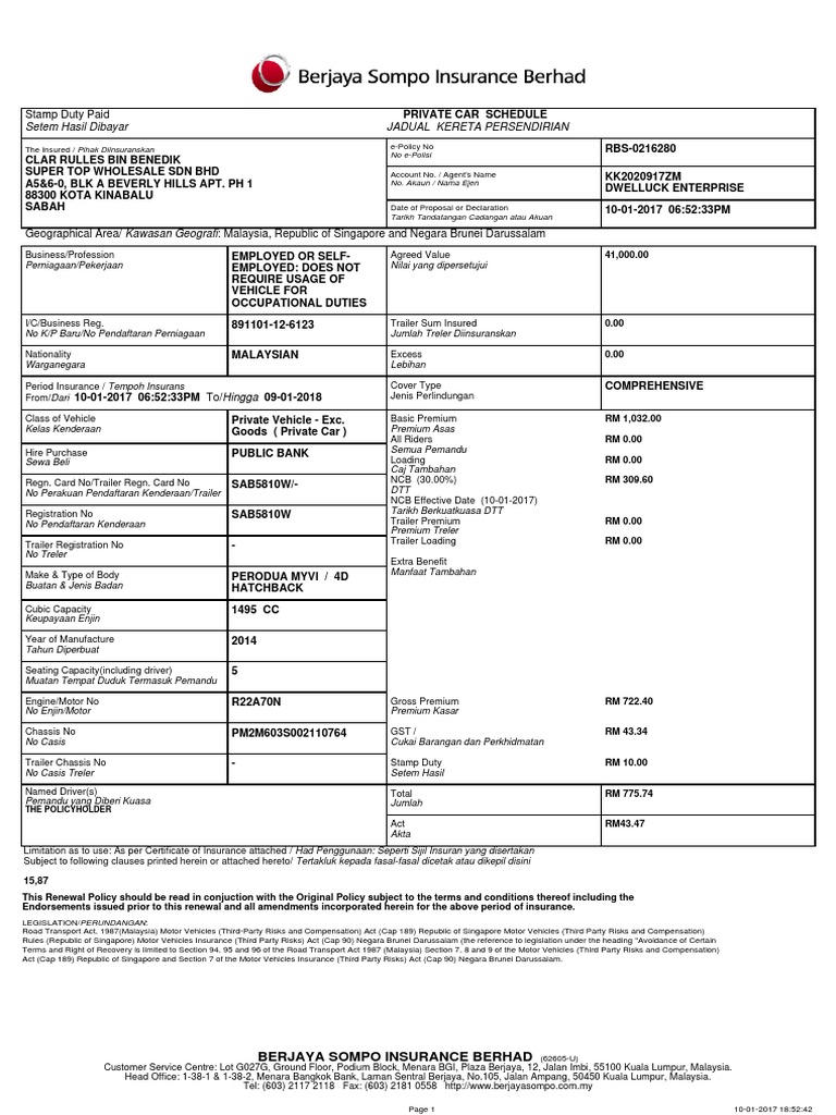 Original Police Report if applicable 报警文件. See What You Can Save and Get a Quote Now. Locate Us Berjaya Sompo Insurance Berhad Registration No.